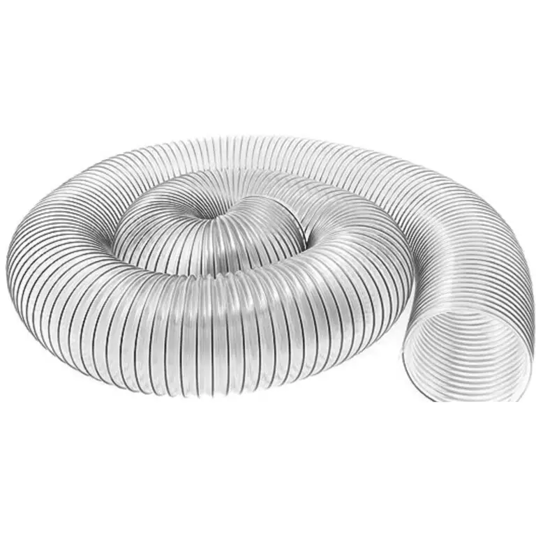 Our clear medium-weight PVC dust collection hose is wire reinforced and has an inside diameter of 2-1/2″ and is 10 feet long.