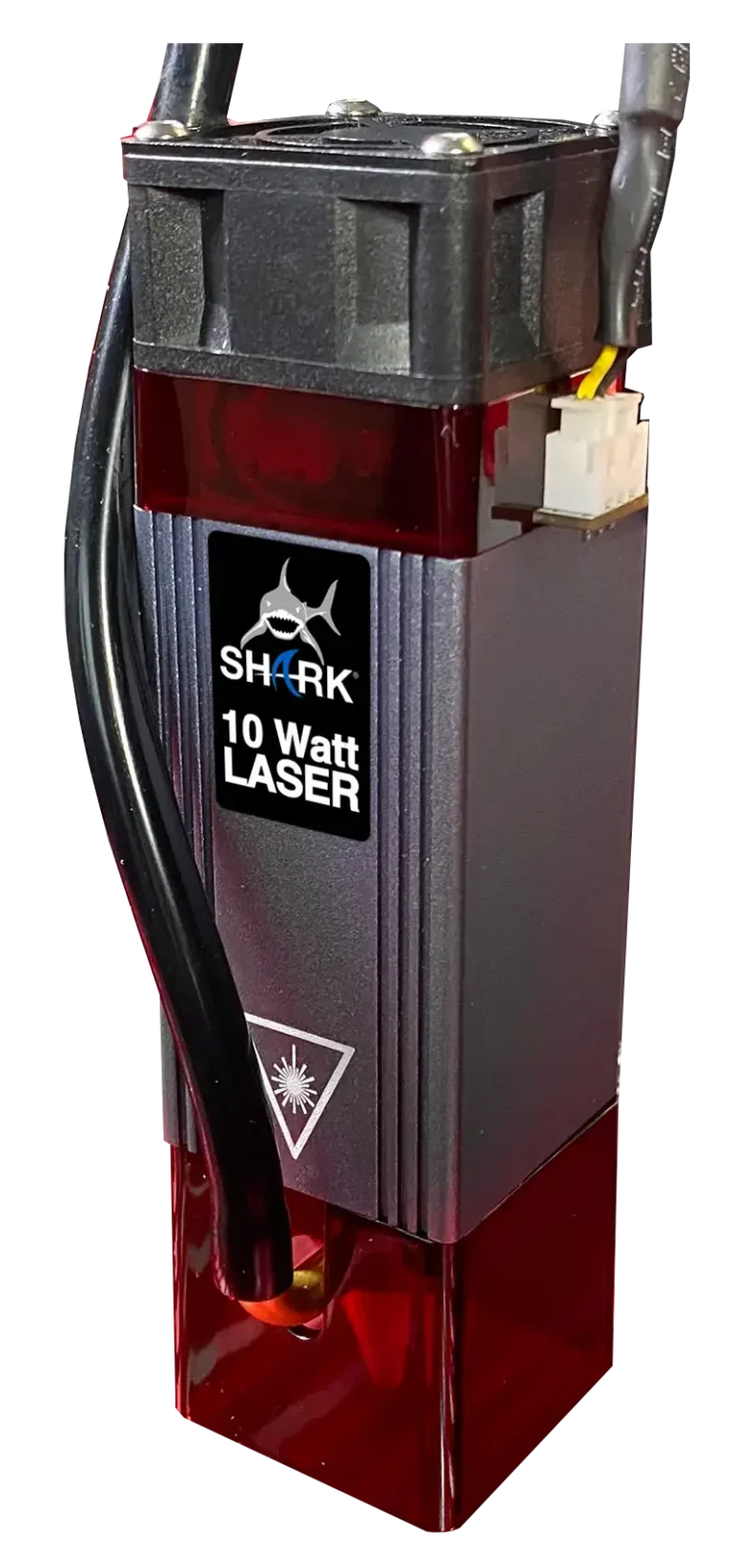 The 20W laser module for Shark CNC which enables you to create detailed photographic images, engravings, and lettering. You can burn various materials including wood, acrylic, leather, foam, or any craft suitable for woodburning. Also possible to cut some thin materials.