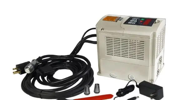 This 3hp Water Cooled Spindle Kit is ultra-quiet, made with long-life German-made precision bearings, and designed for harsh environment operations. Operates on standard 110V AC and will plug directly into any standard wall socket (requires 15-amp circuit).