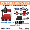 The Shark HD500 ® is the perfect tool for carving or machining a large variety of projects made from wood, soft metals, composites, or plastics. It is fully compatible with Next Wave CNC’s extensive product line of additional accessories, such as a spindle, laser, 4th axis, digital probe and drawing tool.