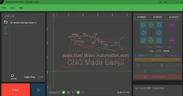 Next Wave CNC’s SHARK HD510® comes standard with everything you need to quickly get set up and running: the latest version of Vectric VCarve Desktop design software, a color pendant controller, 2 hold-down clamps, carbide V-bit, Next Wave Ready2Control Software, and Next Wave CNC’s exclusive, patented Virtual Zero Unlimited software.