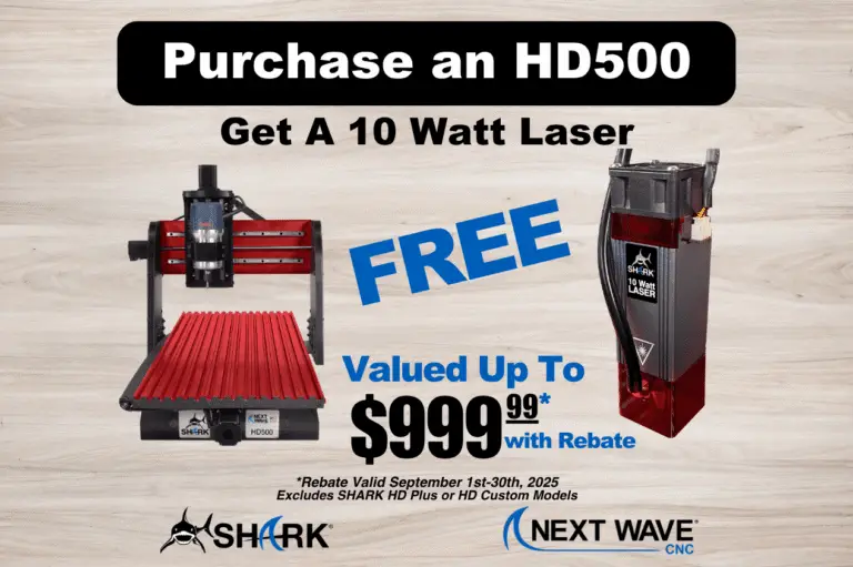Next Wave CNC is always happy to assist, whether you need help determining which machine to buy or need help using your machine. If you have questions about the Shark HD 520, reach out to our team any time. Simply call us at (419) 318-4822 or email us at support@nextwavecnc.com.