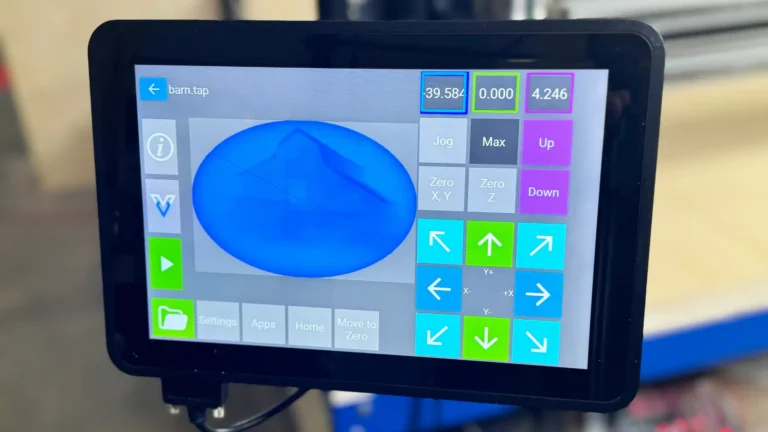 1. Design your project using VCarve Pro software (available separately). Once the design is ready, transfer it to a USB drive. Plug the USB drive directly into the LCD pendant. This pendant features a convenient touch screen interface that eliminates the need for a computer to control the CNC in your shop.