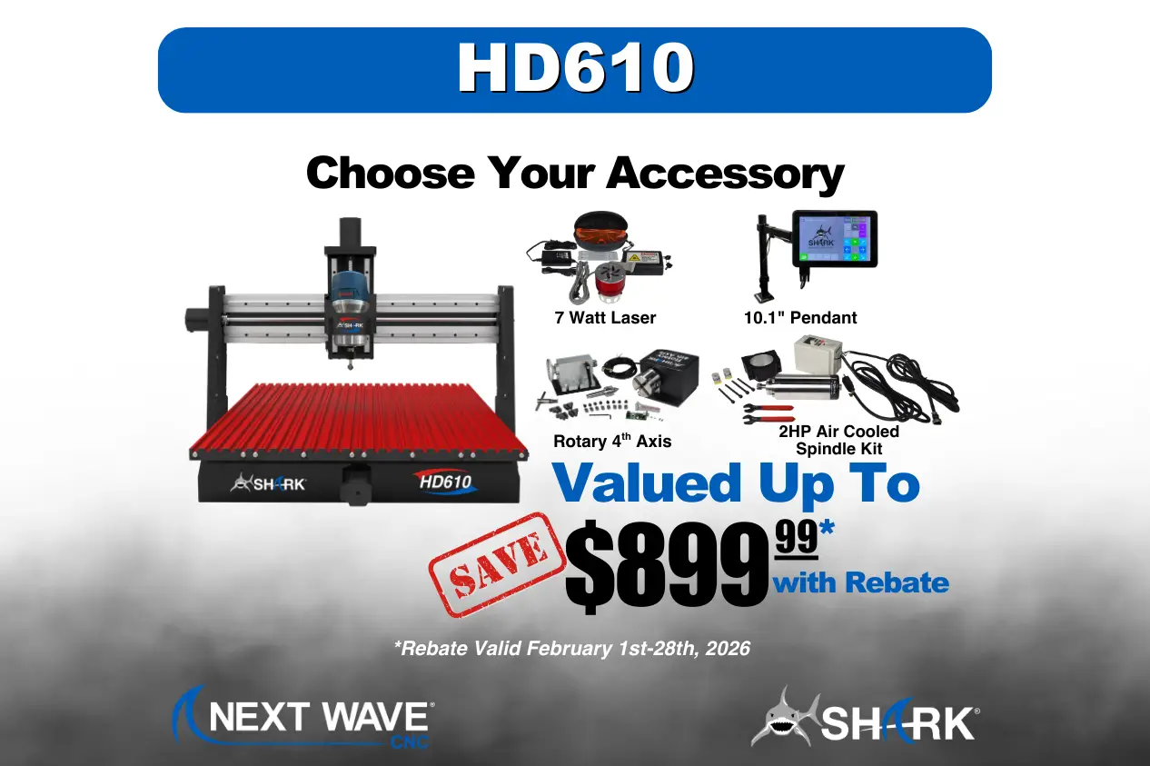 With nearly 20 years of experience in CNC manufacturing, Next Wave CNC understands what matters most to users. Building on the proven success of our HD5 models, the new Shark HD610® Standard is designed to excel in both home workshops and demanding production environments—delivering powerful, next-level performance.