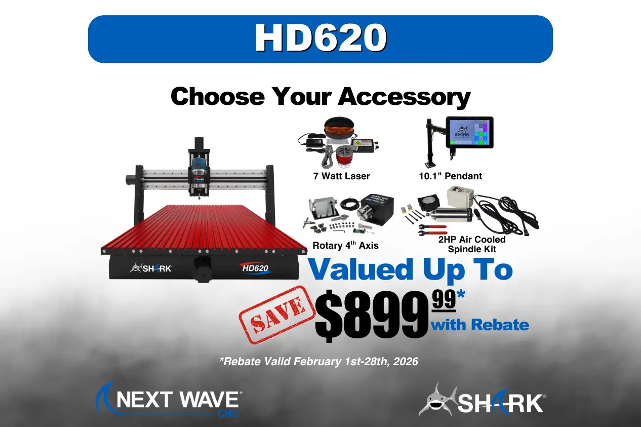 With nearly 20 years of experience in CNC manufacturing, Next Wave CNC understands what matters most to users. Building on the proven success of our HD5 models, the new Shark HD620® Standard Package is designed to excel in both home workshops and demanding production environments—delivering powerful, next-level performance.