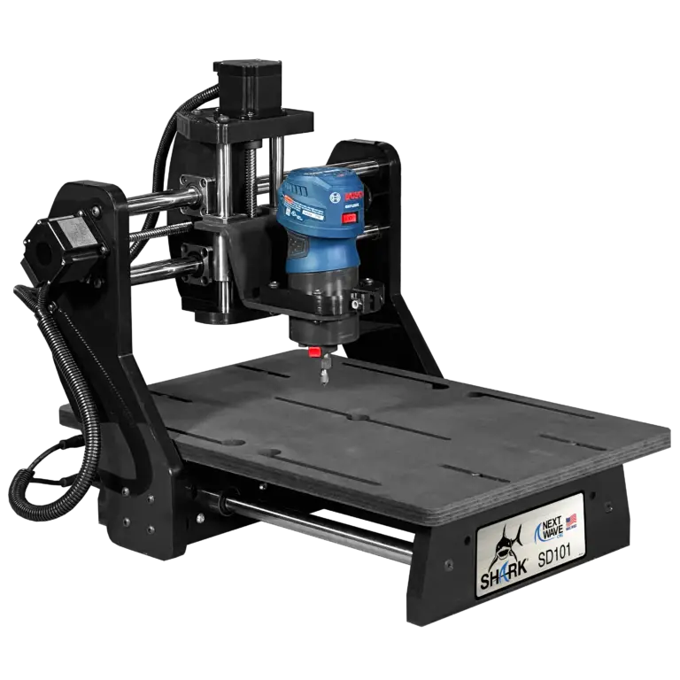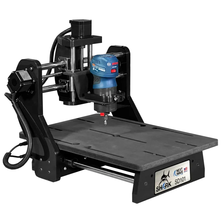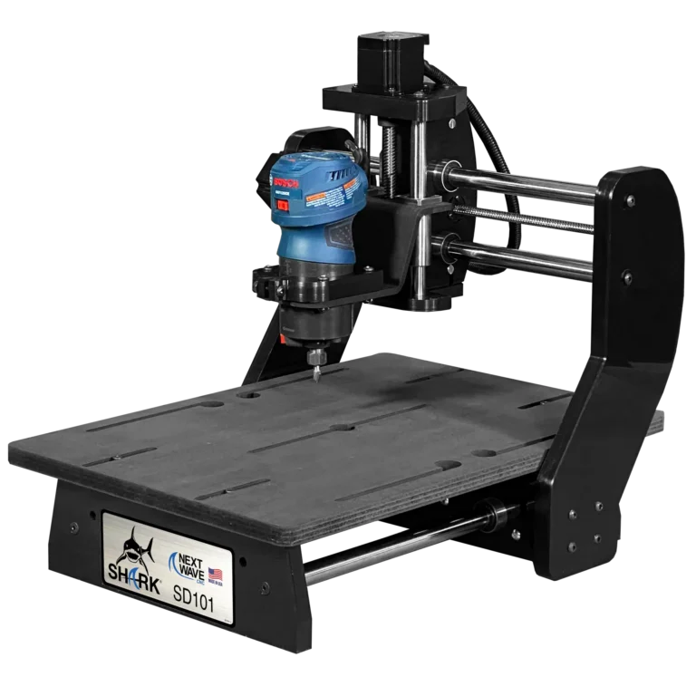 The SHARK SD101® with onboard electronics and plug and play design will accept any of Next Wave’s full line of accessories, such as the 2W & 7W laser modules, the mini 4th axis, touch plate, Shark Tooth, or even the Shark 3D digitizer.