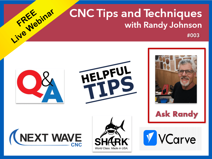 Unlock the potential of your CNC router with this live webinar, CNC Tips and Techniques with Randy Johnson. Whether you’re a hobbyist or aspiring professional, this webinar series will help you improve the accuracy, efficiency, and creativity of your projects. Randy will share practical strategies for project design, toolpath setup, bit selection, machine operation, and workflow organization. With years of CNC experience, he’ll show you how to avoid common mistakes and streamline your process from design to finished part. Bring your questions and walk away with valuable tips you can apply to your CNC projects today.
